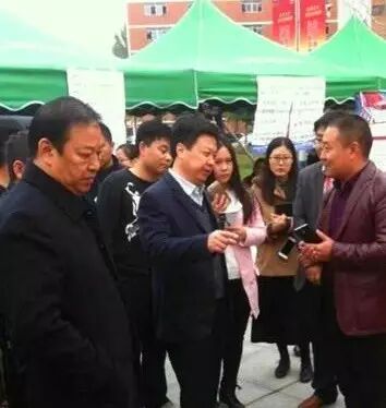 招聘会进行到约一半时, 刘院长亲率众领导视察招聘会现场。刘院长仔细询问了企业情况,认真聆听企事业工作人员的汇报。下面献图一张,以示感谢!