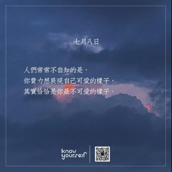 请相信,当你完全接纳了自己之后,才有可能遇到一个完全接纳你的人。因为只有在自我接纳的前提之下,你才能在关系中做那个真实的你,并真正筛选出被这个真实的你吸引的人。